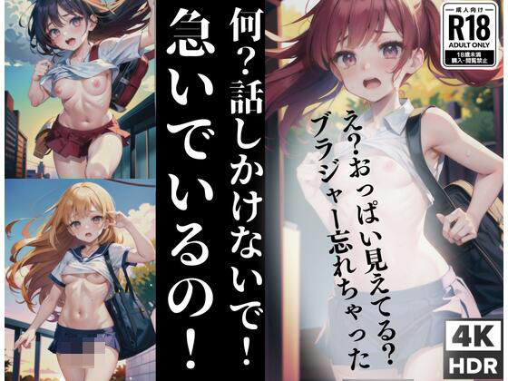遅刻しそうで 急いでいる女の子「なに?話しかけないで 急いでいるの!え?おっぱい… あ、ブラ忘れちゃった」