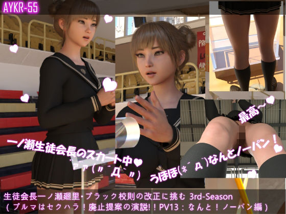【▲200】生徒会長一ノ瀬廻里・朝の全校演説 3rd-Season(『体育のブルマを廃止したい!ブルマはセクハラだと訴える廻里!しかしスカートの中は…』PV13:破廉恥ノーパン編)